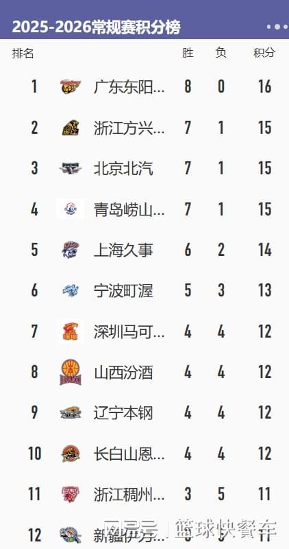 CBA积分榜最新排名出炉!广东逆袭北京冲上第1:辽宁已跌出前八?